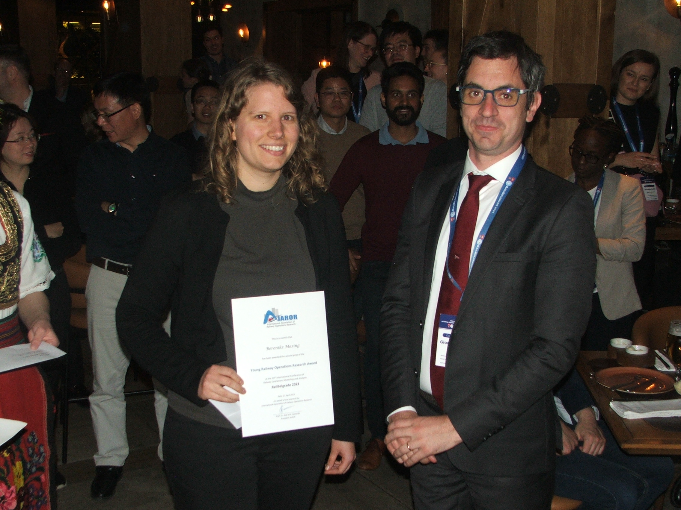 - Berenike Masing for her paper "Periodic timetabling with integrated track choice for railway construction sites", with co-authors Niels Lindner and Christian Liebchen